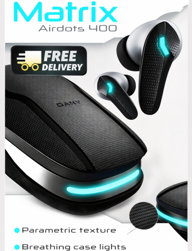 Experience powerful sound aur next-level calling with Dany Matrix Airdots 400, now available at Pulse Gadgetry. Ye true wireless earbuds long battery life, gaming mode aur advanced noise cancellation ke sath daily use aur gamers dono ke liye ideal hain.